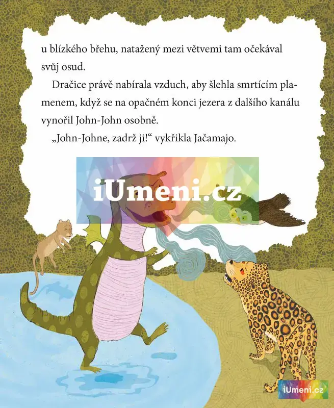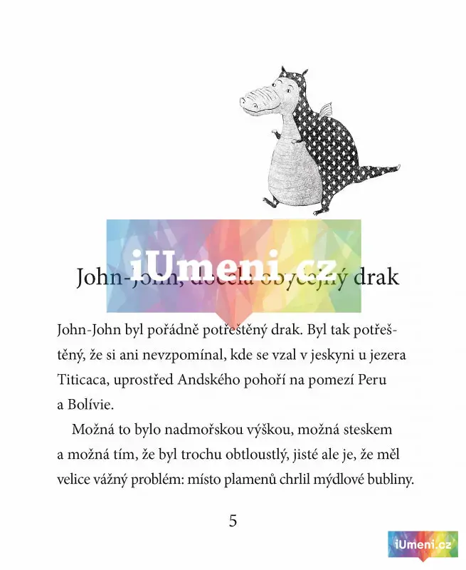 Co se to děje? U jezera Titicaca uprostřed Andského pohoří se zničehonic objevil dráček. Jako by nestačilo, že je celý fialový a trochu obtloustlý, navíc ještě místo ohně chrlí mýdlové bubliny. Však se mu za to ostatní zvířátka pěkně smějí. Jednoho dne k jezeru dorazí krásná dračice Marina a zanedlouho se s ní dráček John-John ztratí stejně náhle, jako se objevil.
