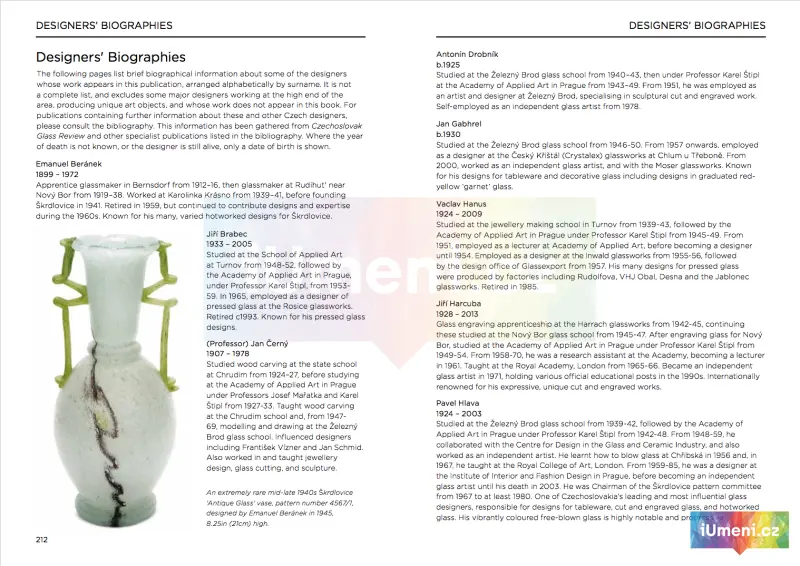 The 1950s-70s saw a renaissance in Czech glass design that re-established the country’s global reputation in this area. From behind the Iron Curtain, skilled designers pushed the boundaries of 20th century glass design and produced unique art glass masterpieces that went on to inspire visually stunning, high quality production ranges. Exported and sold across the world as art glass for the home, these modern and vibrantly coloured designs became enormously successful. Despite this, the designers responsible were rarely named. Today, the designs they produced typically lie forgotten or misattributed.This publication brings together and identifies many of these works, and includes hot-worked, pressed, cut, engraved, gilded and enamelled designs. An illustrated introduction also gives an overview of the fascinating story behind the creation of these avant garde works, and designer biographies explain more about the people behind them. With over 500 specially commissioned, full colour images including labels and signatures, this book will be invaluable to glass collectors and 20th century design enthusiasts.