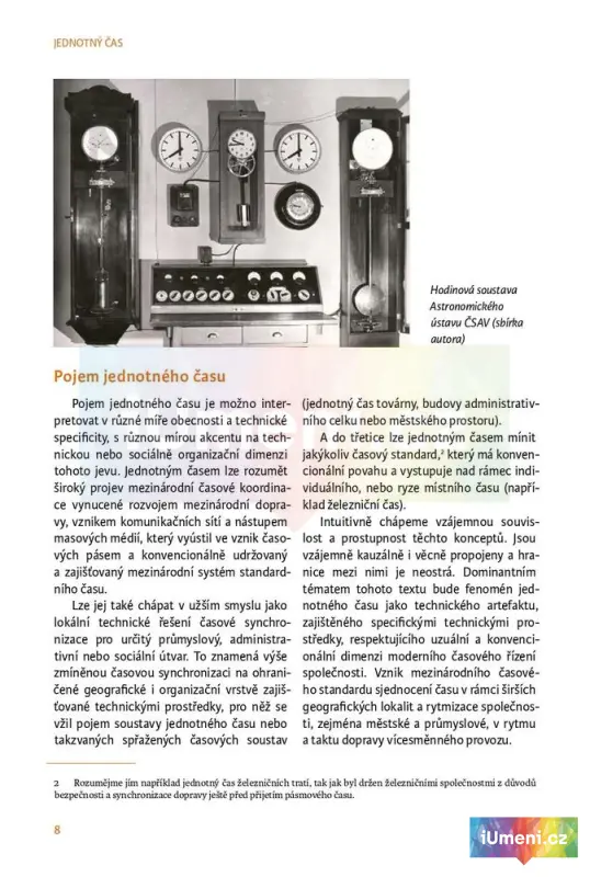 Časové ukazatele jsou určitými majáky doby. Zatímco starověké civilizace vztyčovaly obelisky a gnomóny, které byly osami světa, středověká Evropa časový ukazatel umístila na kostelní věž. Městské a měšťanské společnosti si čas umístily do průčelí radnic a úřadů, rozvinutější občanská společnost konce 19. a počátku 20 století čas liberalizovala jeho dostupností díky pouličním hodinám. Veřejný čas a informace o čase nesou vždy společenské a kulturní konotace. Vypovídají mnohé o politickém uspořádání a distribuci moci a hodnotách společnosti, která se jimi řídí. Kdo má právo určovat správný čas nebo pověření z vyšší moci rytmizovat řád světa.Jak docházkové hodiny, tak systémy jednotného času i lístkové informační tabule přinášely veřejnosti informace, které napomáhaly její disciplinaci, synchronizaci a rytmizaci. Zároveň však tím, že byly součástí veřejného prostoru, tvořily určitý typický vizuální prvek, jehož přítomnost reflektovala popkultura nebo umění. Ukazatele jednotného času, černobílé ciferníky podružných hodin produkovaných za první republiky firmou Jednotný čas, později československým podnikem Elektročas/Pragotron, tento emblematický fenomén mnohých veřejných budov, nádraží, fabrik škol a úřadů patří k určitým estetickým dominantám druhé poloviny 20. století.