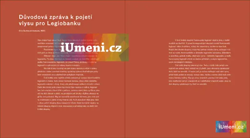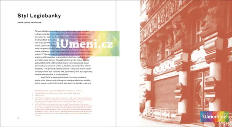 Monumentální a umělecky jednotná budova dokončená roku 1923 je originálním českým příspěvkem a součástí evropského slohu art déco. Drobná, leč informacemi a fotografiemi nabitá publikace vypravuje příběh československých legií a budování jejich bankovního ústavu, představuje tvůrce výjimečné stavby i historii místa, kde stojí, přináší neznámé údaje o proinvestovaných částkách, realizačních stavebních firmách či původním rozvržení interiérů a názorným způsobem vysvětluje mimořádnou sochařskou výzdobu fasády domu.Obdivovaná i některými estéty kritizovaná budova Banky československých legií v Praze Na Poříčí je v každém případě stěžejním dílem největšího českého architekta 20. století Josefa Gočára, od jehož smrti právě uplynulo 70 let. V nadšené době po skončení první světové války a vzniku samostatného československého státu se s dalšími umělci zapojil do hledání výstižného a seriózního „národního“ výrazu, jenž by se vymezil vůči „bezpohlavnímu internacionalismu“, zúročil by nejlepší místní tradice a zhmotnil ideje nové republiky. Styl pro oficiální architekturu ve službách státu vykrystalizoval právě v monumentálním a umělecky jednotném řešení Legiobanky, jakési plastické krajky v národních barvách, prostupující fasádou do interiérů až po poslední detail zařízení. Celkové vyznění spoluvytvořili přizvaní kolegové, špičky ve svých oborech a profesoři uměleckých škol, sochaři Štursa a Gutfreund a designér František Kysela. Právě tato celistvá umělecká symbióza (tzv. Gesamtkunstwerk), ať už je nazývána věcně národním slohem, nebo ironicky rondokubismem či obloučkovou architekturou, představuje významnou výtvarnou hodnotu, která je originálním českým příspěvkem a součástí evropského dekorativismu (tzv. art déco).