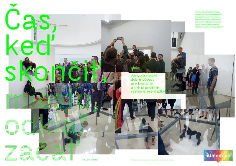 Magazín vydávaný Slovenskou národnou galériou s ročnou periodicitou bol premiérovo uvedený na jar v roku 2015. Štvrté vydanie je koncipované so záberom na viacero kľúčových tém. Jednou z nich je fenomén bienálnych prehliadok umenia. V magazíne si môžete prečítať štúdiu nemeckého profesora Jörna Schafaffa Čas, keď skončiť, miesto, odkiaľ začať, v ktorej sa zamýšľa nad významom výstavnej politiky tohto typu v dnešnom svete umenia. Na štúdiu nadväzujú tematické reportáže z minuloročných prehliadok documenta 14 v Kasseli (BEINGSAFEISBORING. O skrytých pokladoch štrnástej documenty od Michala Stolárika), Skulptur Projekte Münster (Umenie nemôže nahradiť zubnú kefku. Reportáž zo Skulptur Projekte 2017 od Vladimíry Büngerovej) a OFF-Bienále v Budapešti (Tak čo je tu hra? od Nadje Quante).Medzi pravidelné rubriky patrí prehľad tvorby vybraných predstaviteľov najmladšej generácie umelcov Generácia 80+/90+ (Lucia Gavulová a Erik Vilím), prehľadová štúdia o vývoji a pohyboch na trhu s umením za uplynulý rok (Trh slzám neverí. Krátka správa o trhu s umením od Niny Gažovičovej), ďalší diel zo seriálu o tematicky koncipovaných múzeách (Open air. Múzeá pod holým nebom Dušana Burana), návšteva v byte zberateľov umenia (Ako býva umenie od Júliusa Barcziho).