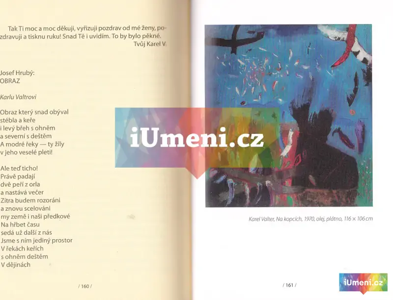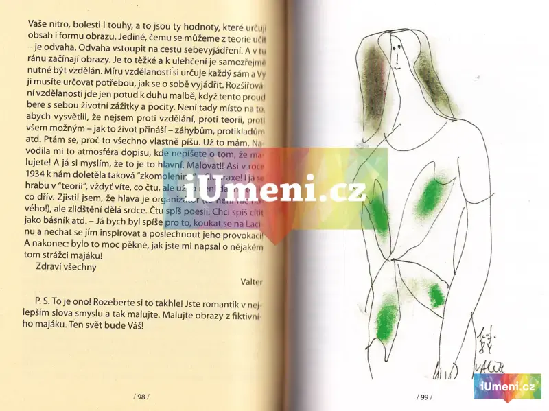 Dopisy jednotlivých adresátů jsou řazeny chronologicky a rovněž výběr výtvarného doprovodu je časově synchronizován s dopisy.Karel Valter (1909-2006) patří ke klasikům českého výtvarného umění. Na počátku 30. let minulého století spoluzakládal českobudějovické avantgardní sdružení Linie a experimentoval v oblasti výtvarné (stříkané abstraktní geometrické kresby), zabýval se i fotografii a hudbou, uváděl v českém prostředí významné představitele světové avantgardy (s Josefem Bartuškou realizoval první výstavu v Československu předního reprezentanta Bauhausu Laszla Moholy-Nagyho), patřil i do okruhu kolem E. F. Buriana, který mu ve svém divadle D 40 uspořádal jeho první výstavu. Celoživotně působil jako učitel, nejprve v Českých Velenicích a později v Táboře, za války byl vězněn v koncentračním táboře Buchenwald (1943-1945). Od čtyřicátých let se Karel Valter soustavně zabýval krajinomalbou a jeho malířské umění vyzrálo právě v tomto žánru, kterému zůstal věrný až do konce života.