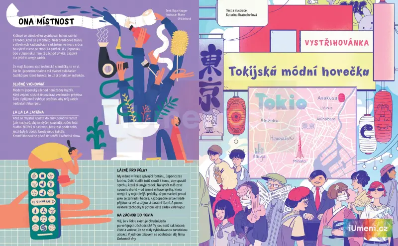 Vypravte se s námi objevovat jedinečnou a bohatou kulturu této krásné země. Dočtete se, kolik má Japonsko ostrovů a jak vypadá místní kuchyně. Čím se liší nindžové od samurajů a jak vznikli pokémoni. V hledačce se ztratíte v tokijských ulicích a najdete tu správnou panenku kokeši. Co dokážou japonské toalety a kdo všechno přišel na hostinu suši. Jarmil se setká s Godzillou a Doktor Racek vysvětlí, co znamená kult kawaii. Obálku nakreslila Katarina Kratochvílová.