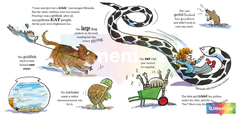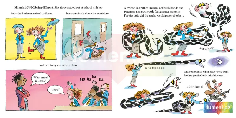 From Number One bestselling picture book duo, David Walliams and Tony Ross, comes this ssssspectacularly funny picture book for children of 3 and up. Miranda loves to be different, and on Bring-your-pet-to-school Day she introduces everyone to her very DIFFERENT pet Penelope the snake. Miss Bloat the headmistress doesn’t think snakes should be allowed in school. But Penelope has other ideas Introducing a spectacularly slithery new picture book packed with mischief and mayhem from two superstars!