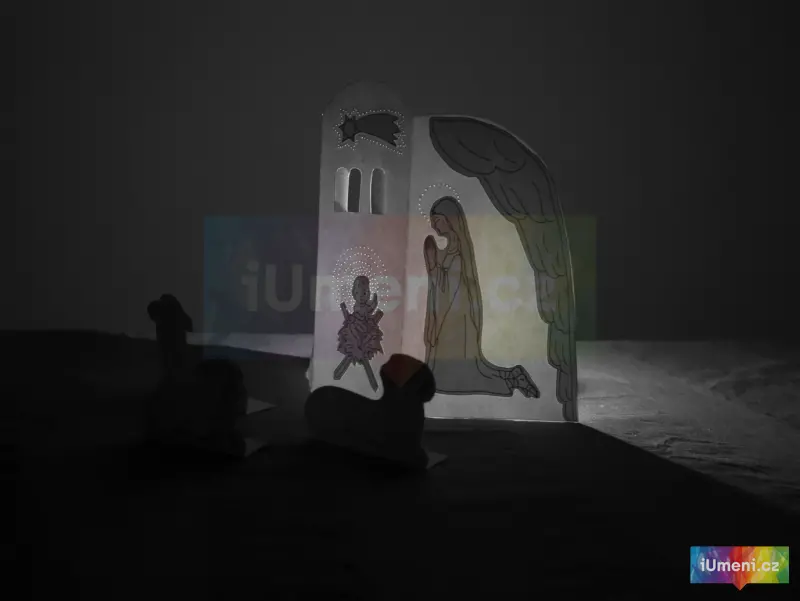 Vystřihovánka zazáří, když za ni umístíte svíčku. A nebo když ji postavíte k oknu.