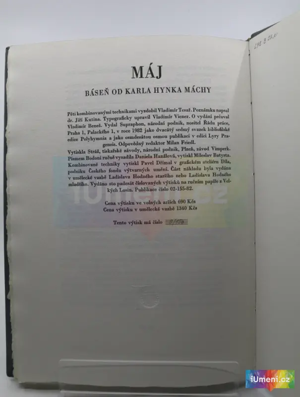Poznámku napsal dr. Jiří Kutina. Vydal Supraphon v roce 1982 jako 27. svazek bibliofilské edice Polyhymnia a jako 88. publikaci v edici Lyry Pragensis. 5 kombinovaných technik Vladimír Tesař, všechny signovány tužkou. Vydáno 150 číslovaných výtisků na ručním papíře z Velkých Losin. Tento číslo 9/150. Umělecká vazba Ladislav Hodný. Unikátní vazba se zlacením, zlatá ořízka.
