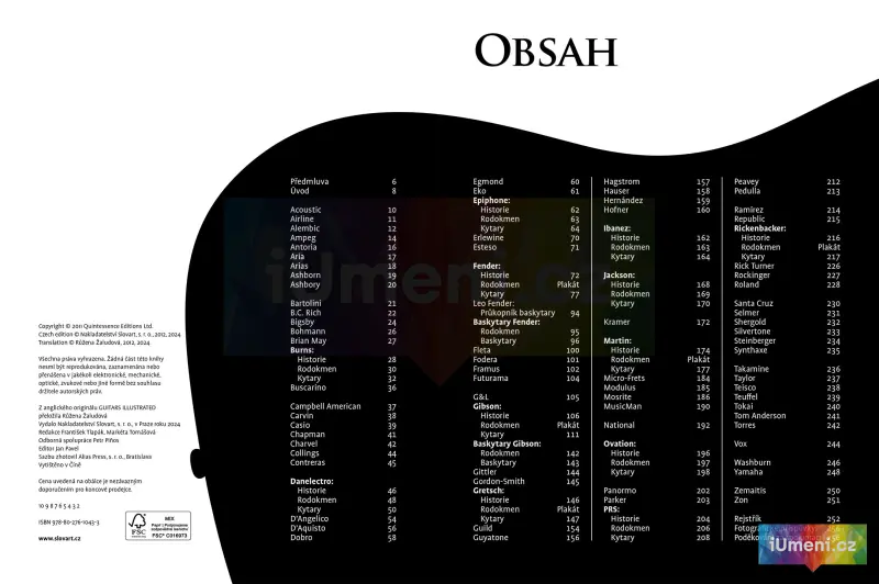 - bonusové vyjmutelné, bohatě vybavené plakáty zobrazující rodokmeny pěti hlavních kytarových dynastií - Fender, Gibson, Gretsch, Martin a Rickenbacker.