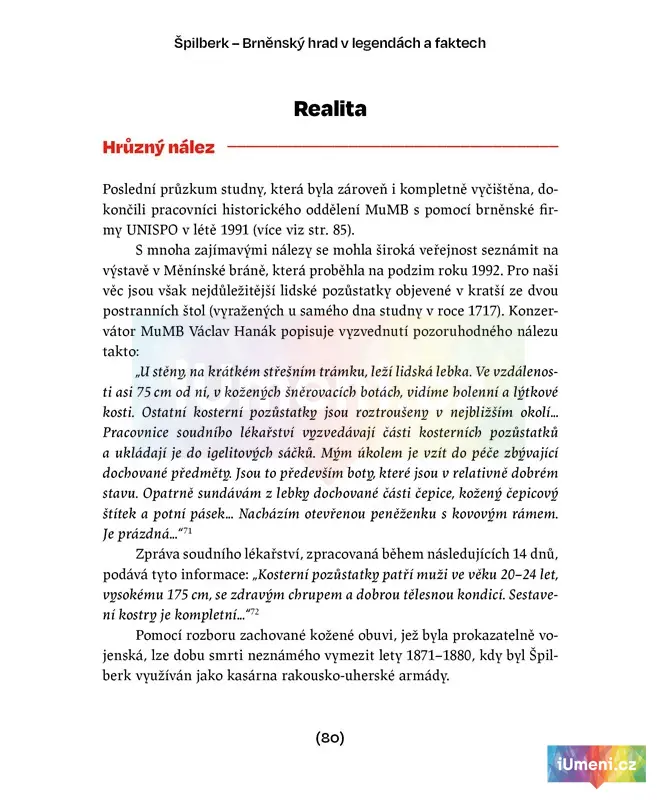 Historie Špilberku sahá až do 13. století a pověsti, které tuto brněnskou dominantu opřádají, jsou proto velmi pestré. Vydáte se s nimi do přemyslovských dob, časů švédského obléhání, let rakousko-uherské monarchie i období protektorátu. Sestoupíte na dno studny či do temných kasemat, kde navštívíte hladomornu, mučírnu, sekyrárnu i josefínské kobky, a nakonec odhalíte osudy známých špilberských vězňů. Legenda, nebo realita? To vše se prolíná v příbězích jednoho z nejvýznamnějších symbolů našich dějin.