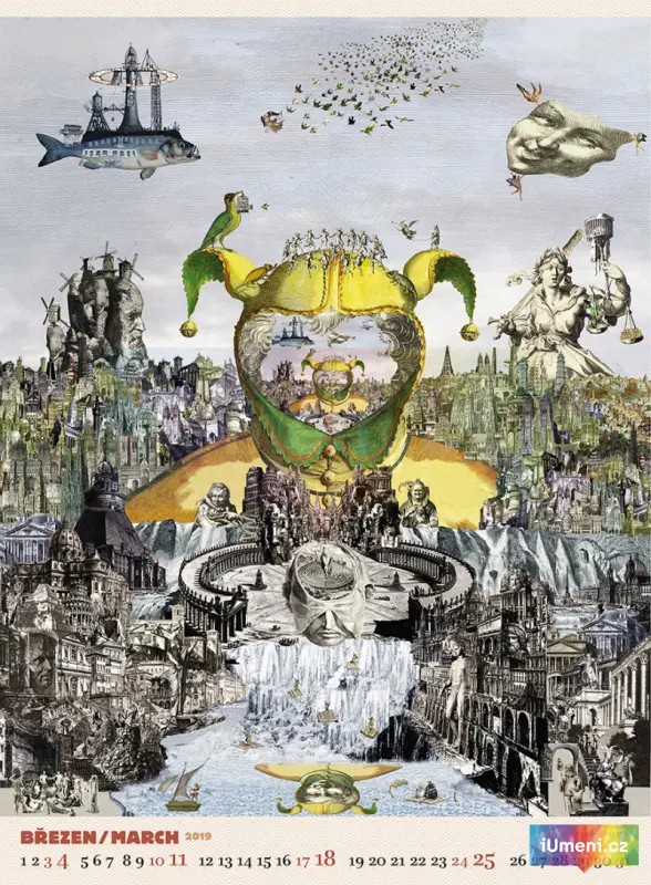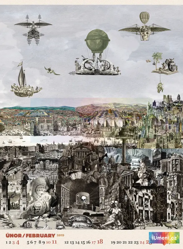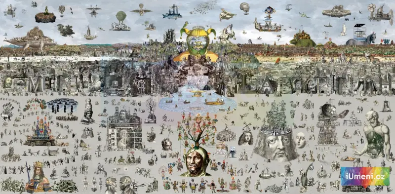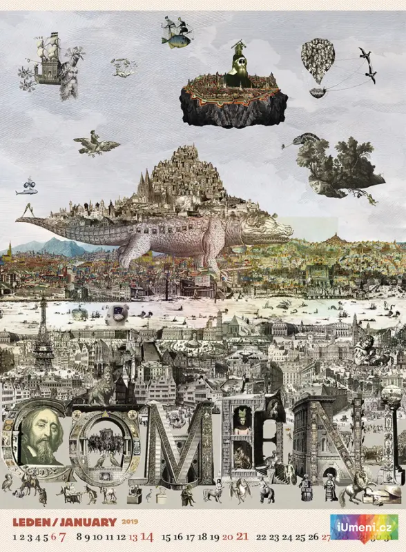 Exkluzivní nástěnný kalendář Labyrint světa 2019 Miroslava Huptycha. 10 listů bude možné slepit obraz ve formátu 2400 mm x 1180 mm.