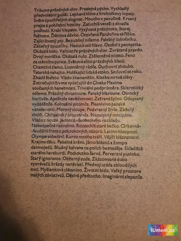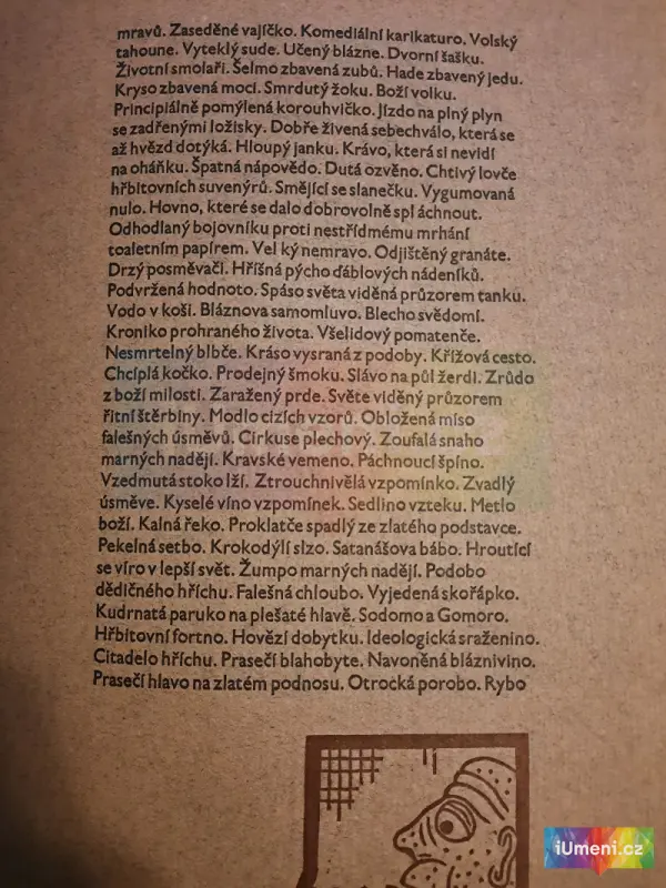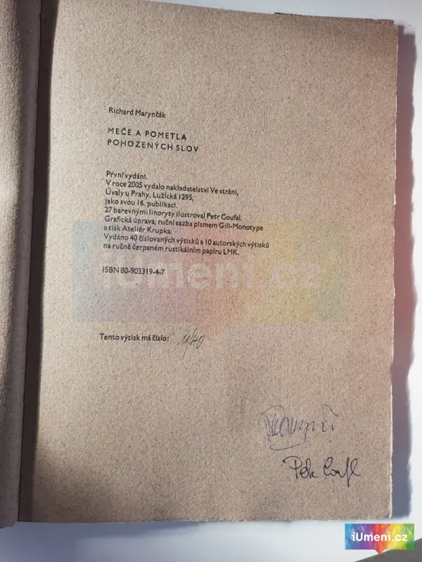 Název: Meče a pometla pohozených slov (bibliofilie) • ISBN: 80-903319-4-7 • Jazyk: Česky • Rok: 2005 • EAN: 9788090331947 • Hmotnost: 1.20 kg • Vazba: ruční vazba, tisk i papír • Počet stran: 25 • Rozměr: 310x230 • Nakladatel: Krupka