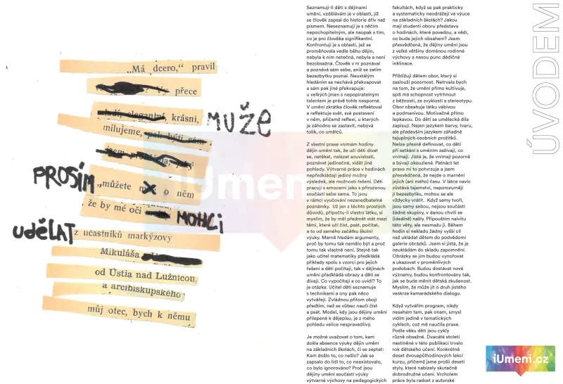 Hana Kováříková se více než deset let věnuje vzdělávání mladších dětí v oblasti výtvarného umění. Ze zkušeností vyvozuje závěry o důležitosti tohoto typu vzdělání, a především o nezbytnosti přehodnocení hodin tzv. výtvarné výchovy na základních školách. Výtvarný doprovod: autorské práce dětí docházejících do jejích kurzů