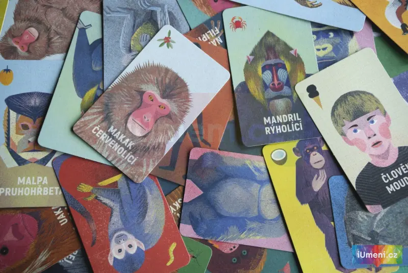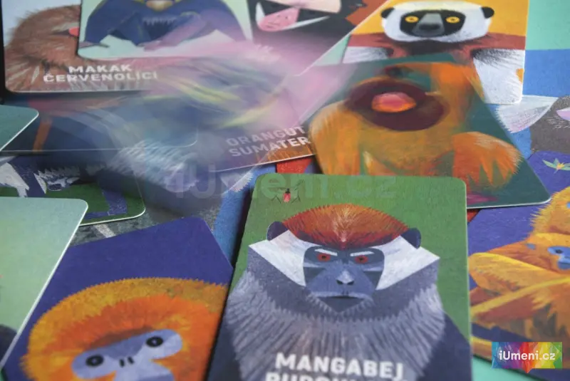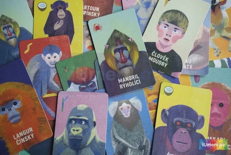 Tato karetní hra je vhodná od 3 let. Obsahuje 15 dvojic opic, 1 Černého Petra a návod.Hráč sbírá dvojice, poznává opice, co mají rády, jak se jmenují. Cílem je poznat druhy opic a zároveň si uvědomit, že člověk je živočich patřící mezi opy neboli primáty. Člověk se z přírody vyděluje a dokonce se jí snaží panovat. Je evolučně nejsilnějším primátem. Někdy to pak špatně dopadá pro jiné druhy