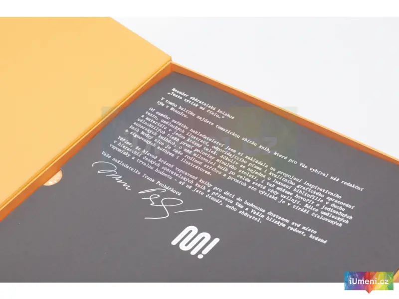 Sběratelská kolekce "Tento výtisk má číslo..." je speciálním produktem nakladatelství Meander. V každém designovém a ručně vyrobeném boxu najdete tematickou sbírku knih, které pro Vás vybíral náš redakční tým z edice uměleckých knih Modrý slon, ve které je prvních sto výtisků v tiráži číslovaných a signovaných autorem i ilustrátorem.