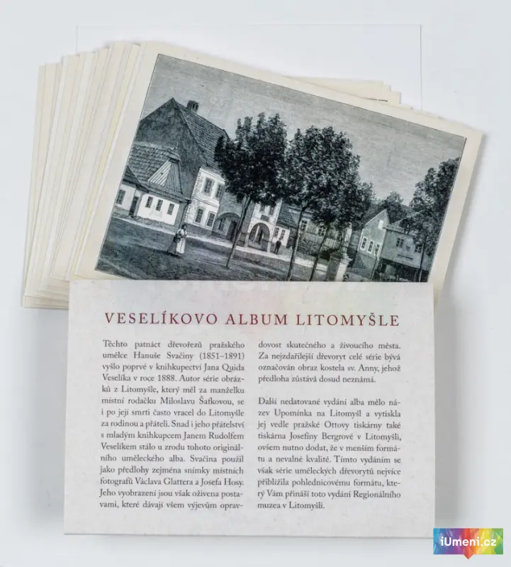 Jeho vyobrazení jsou však oživena postavami, které dávají všem výjevům opravdovost skutečného a živoucího města. Za nejzdařilejší dřevoryt celé série bývá označován obraz kostela sv. Anny.Další nedatované vydání totožného alba mělo název Upomínka na Litomyšl a vytiskla jej vedle pražské Ottovy tiskárny také tiskárna Josefíny Bergrové v Litomyšli, ovšem nutno dodat, že v menším formátu a nevalné kvalitě. Tímto vydáním se však série uměleckých dřevorytů nejvíce přiblížila pohlednicovému formátu, který Vám přináší toto vydání Regionálního muzea v Litomyšli z roku 2024.