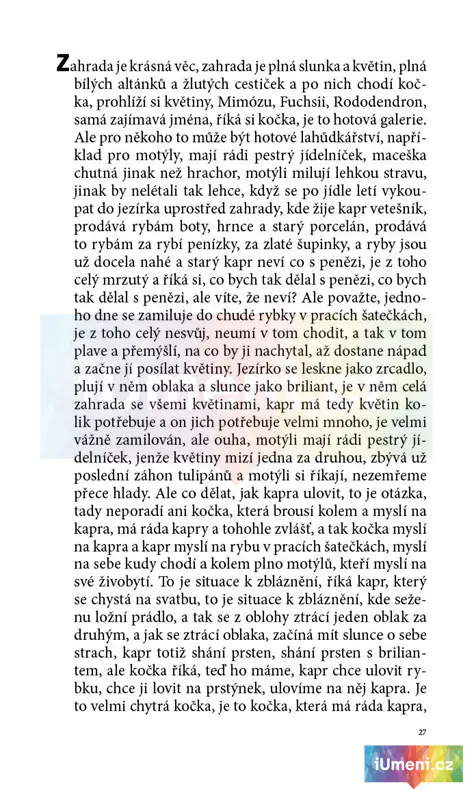 Osmnáct vyprávění, v nichž autor překvapuje groteskními nápady, rychlými přechody z fantazie v realitu, objevováním nečekaného v nejběžnějších věcech a životních jevech. Rozesměje i dojímá, ať už vypráví o žirafě, která si vyměnila hlavu s tulipánem, želvách, jež si vyjely s taxíkem a daly si na cestě vyhrávat hudebníky z baru, návštěvě mraku v cirkusu atd. Příběhy elektrizující bryskním vtipem, paradoxem, výbojnou imaginací a emotivní škálou, rozpjatou od dojímavé lyriky až po bláznivou komiku. Reprint prvního vydání z roku 1964 s úžasnými kolážemi Adolfa Hoffmeistera.
