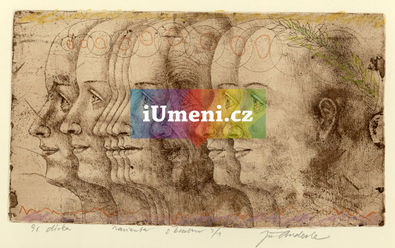 Název: Devětkrát dívka (grafika)· Autor: Anderle Jiří, ak. mal. (malíř)