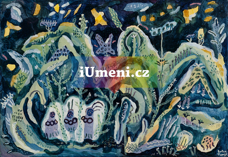 Název: Zpěvy tečkatých zpěvaček I (obraz)· Autor: Nemjó Ester, MgA. (malířka, grafička, film)