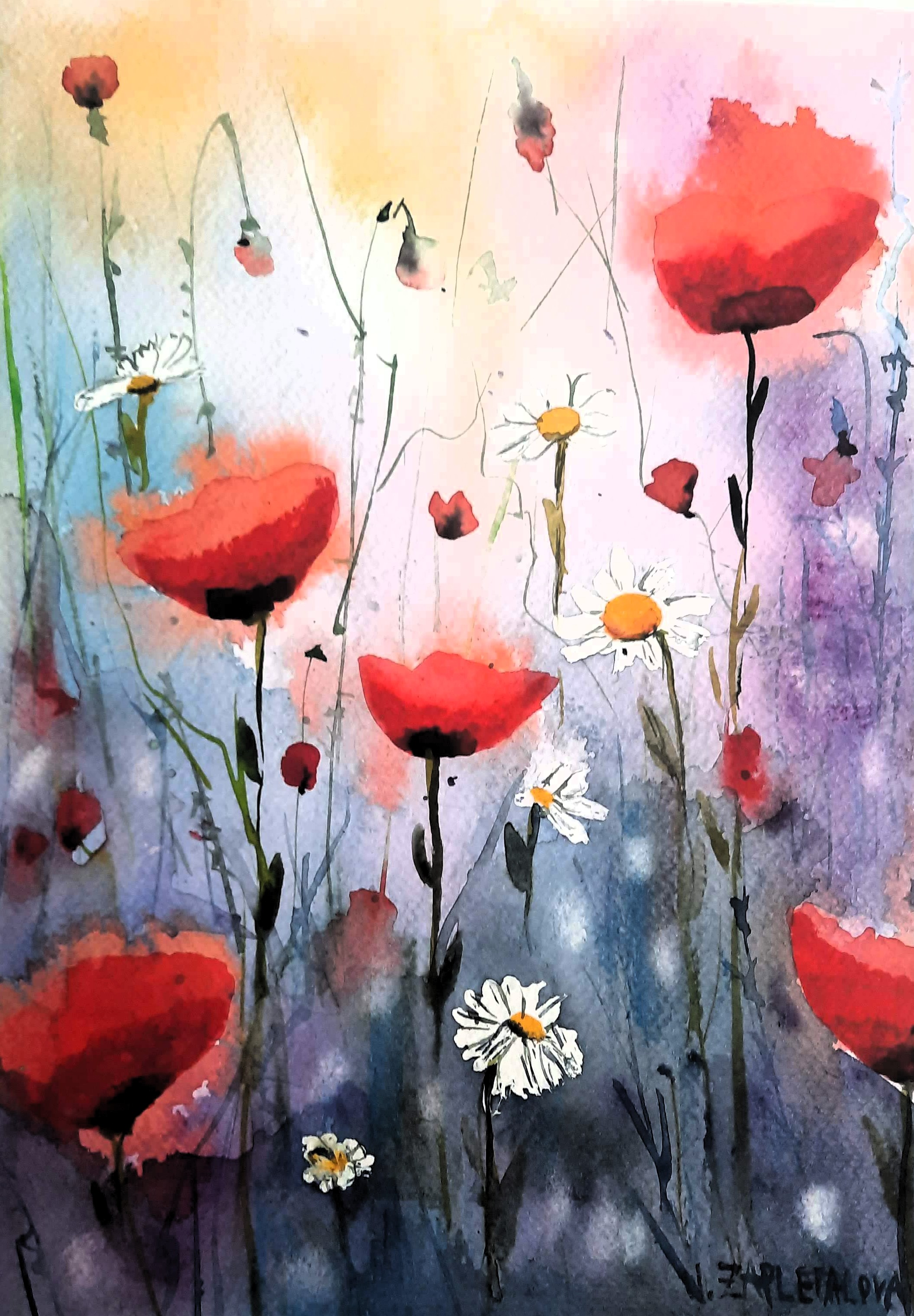 Název: Máky (kresba)· Autor: Zapletalová Jaroslava (malířka)