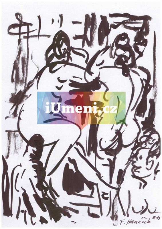 V lázni (kresba) - Hanáček František, ak. mal. (malíř)