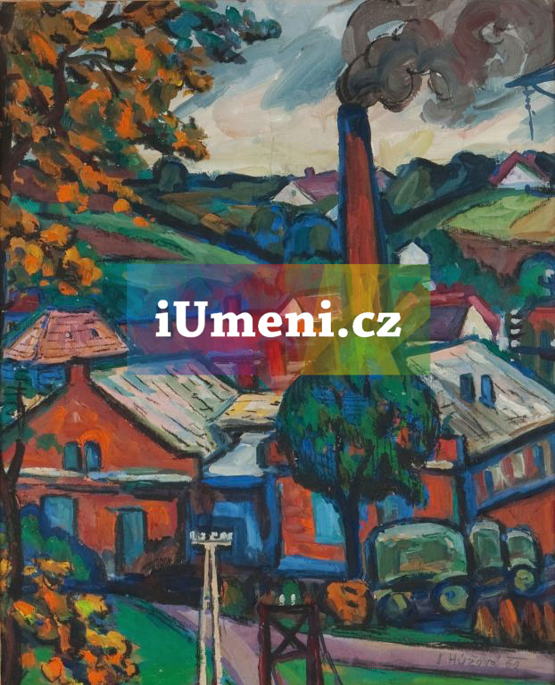 Název: Komíny a domy (obraz)· Autor: Hýžová Jaroslava, ak. mal. (malířka)