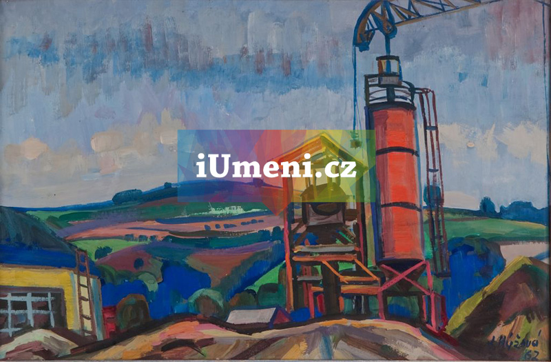 Míchačka betonu v Deze (obraz) - Hýžová Jaroslava, ak. mal. (malířka)