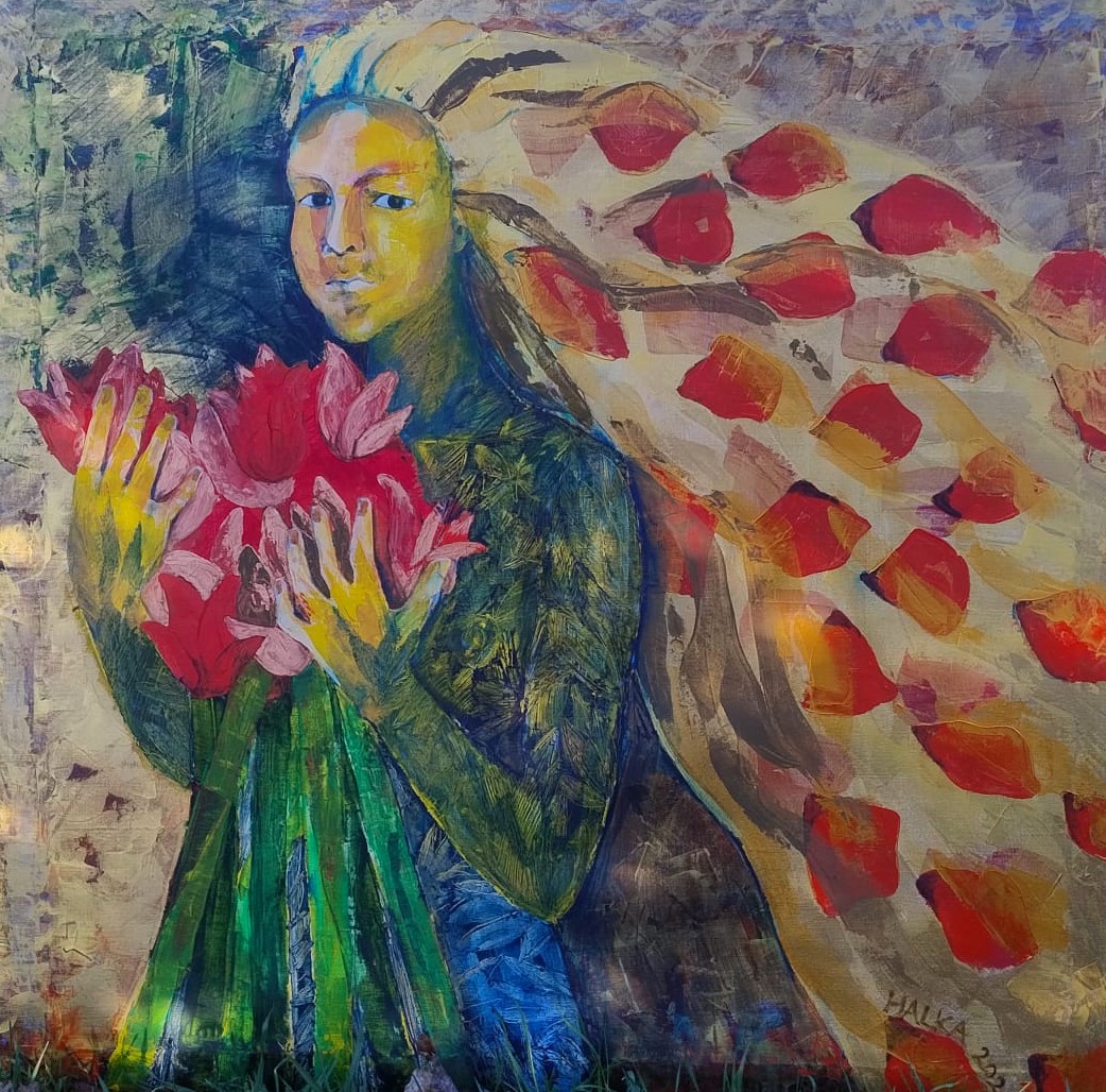 Název: S květy rostu (obraz)· Autor: Kočí Halka (malířka, sochařka)